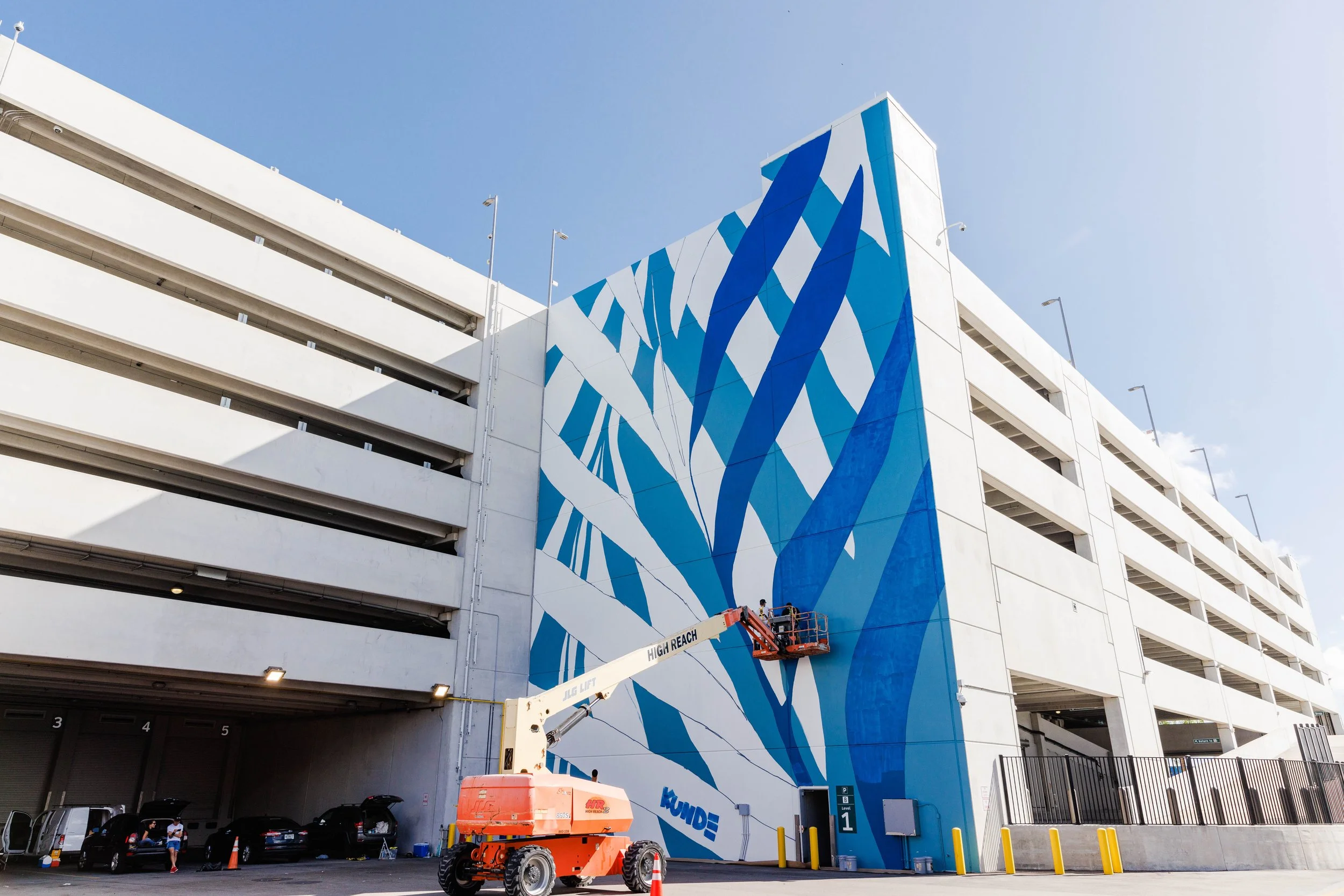 Kunde, the winner of the Norwegian Cruise Lines Call to Artists contest, painted this mural on the Norwegian Cruise Line terminal at PortMiami.